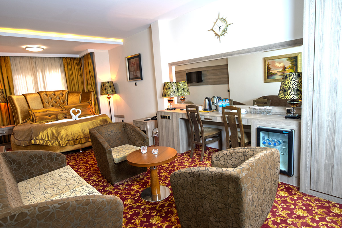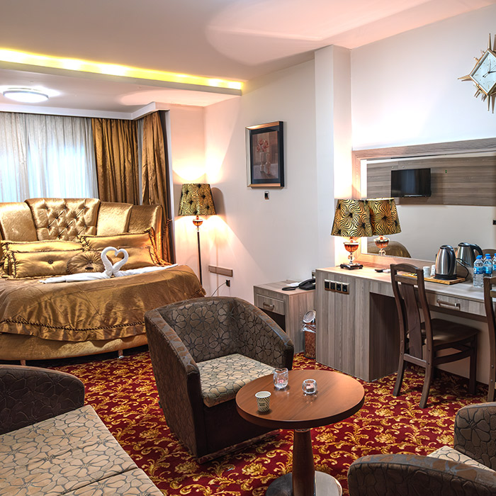 Konaklama deneyiminizi bir üst seviyeye taşımaya hazır mısınız? Güven Hotel’in en özel yaşam alanı olan Luxury Odalarımız, sadece bir uyku alanı değil, aynı zamanda keyifli bir yaşam alanı sunuyor. Özel tasarım mobilyalar, geniş oturma grubu ve şehrin dokusunu hissettiren atmosferiyle bu oda, kendinizi özel hissetmeniz için tasarlandı. Geniş King Size yatağın konforu ve VIP buklet malzemeleriyle şımartılacağınız bu odada, Şanlıurfa gezinizi unutulmaz bir anıya dönüştürün.