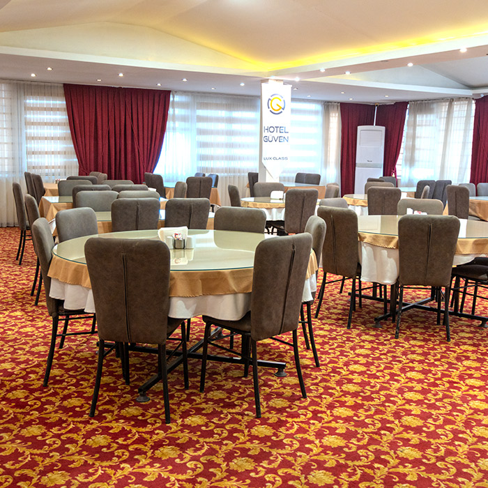 Güven Hotel Restoranı, sadece sunduğu yemeklerle değil, yarattığı atmosferle de fark yaratır. Modern ve geleneksel çizgilerin harmanlandığı dekorasyonumuz, ailenizle, dostlarınızla veya iş ortaklarınızla keyifli vakit geçirmeniz için tasarlanmıştır. Güler yüzlü servis ekibimiz, Türk misafirperverliğinin en güzel örneğini sergileyerek, kendinizi evinizde hissetmeniz için her detayla ilgilenir.